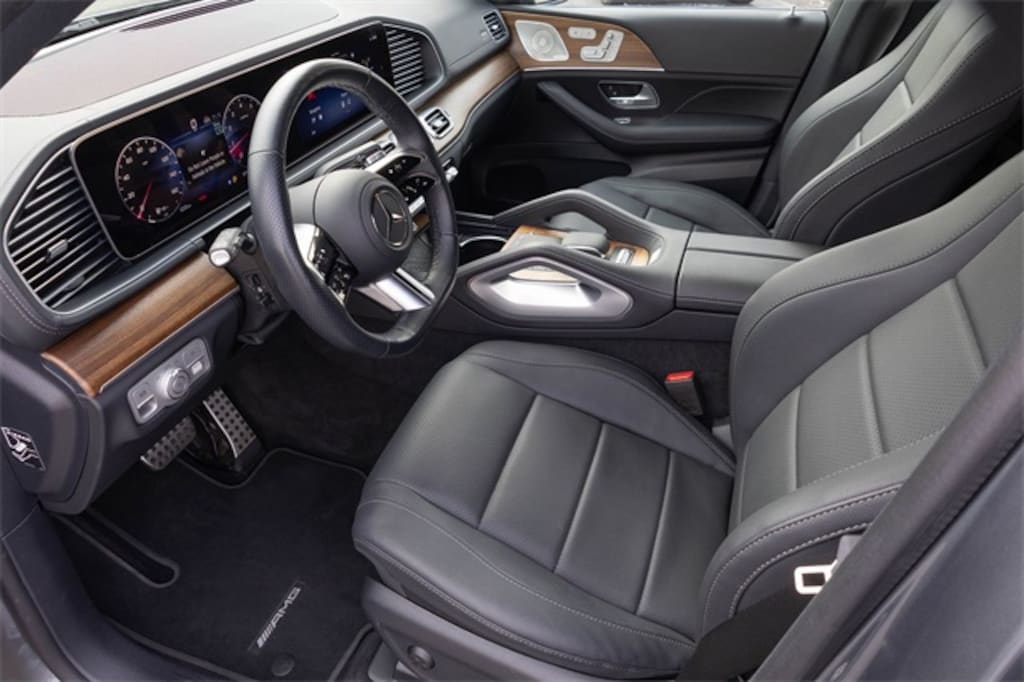 NO DEALER FEES!, Mercedes-Benz Certified Pre-Owned Warranty, ONE OWNER, CLEAN CARFAX, Mercedes-Benz Dealer Maintained, NON-SMOKER, No Accident History, Still Under Factory Warranty, 13 Speakers, 3rd row seats: split-bench, 4-Wheel Disc Brakes, 7-Seat Configuration, ABS brakes, Adaptive suspension, AM/FM radio: SiriusXM, AMG® Bodystyling, AMG® Brushed Stainless Steel Sports Pedals, AMG® Floor Mats, AMG® Line Exterior, AMG® Rear Apron, AMG® Side Skirts in Body Color, AMG® Sport 3-Twin-Spoke Steering Wheel, Apple CarPlay®/Android Auto®, Auto High-beam Headlights, Auto tilt-away steering wheel, Auto-dimming door mirrors, Auto-dimming Rear-View mirror, Auto-leveling suspension, Automatic temperature control, Brake assist, Bumpers: body-color, Child-Seat-Sensing Airbag, Compass, Delay-off headlights, Dual front side impact airbags, Electronic Stability Control, Emergency communication system: eCall Emergency System, Exterior Parking Camera Rear, Four wheel independent suspension, Front and Rear Flared Wheel Arches in Body Color, Front anti-roll bar, Front Center Armrest w/Storage, Front dual zone A/C, Front reading lights, Fully automatic headlights, Garage door transmitter: HomeLink, Head restraints memory, Heated and Ventilated Power Front Seats with Memory, Heated door mirrors, Heated Steering Wheel, Illuminated entry, Large Front Brake System, Leather steering wheel, Navigation system: MB Navigation, Outside temperature display, Overhead airbag, Overhead console, Panic alarm, Passenger vanity mirror, Power adjustable front head restraints, Power door mirrors, Power Liftgate, Power moonroof: Panorama, Premium audio system: MBUX, Radio: Burmester® Surround Sound System, Rain sensing wipers, Rear air conditioning, Rear anti-roll bar, Rear dual zone A/C, Rear fog lights, Rear reading lights, Rear seat center armrest, Rear window defroster, Rear window wiper, Remote keyless entry, Security system, Speed control, Speed-sensing steering, Speed-Sensitive Wipers, Spoiler, Steering wheel memory, Steering wheel mounted audio controls, Tachometer, Telescoping steering wheel, Tilt steering wheel, Traction control, Turn signal indicator mirrors, Variably intermittent wipers, Wheels: 22" AMG® Multi-Spoke Alloy.